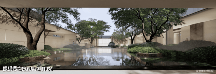 景观设计由北京顺景园林操刀,以“溪山行旅”为叙事主线,打造“归林-观山-临水-栖谷”四重景观序列,中央水景池底镶嵌《溪山行旅图》局部浮雕,实现文化符号的沉浸式植入。