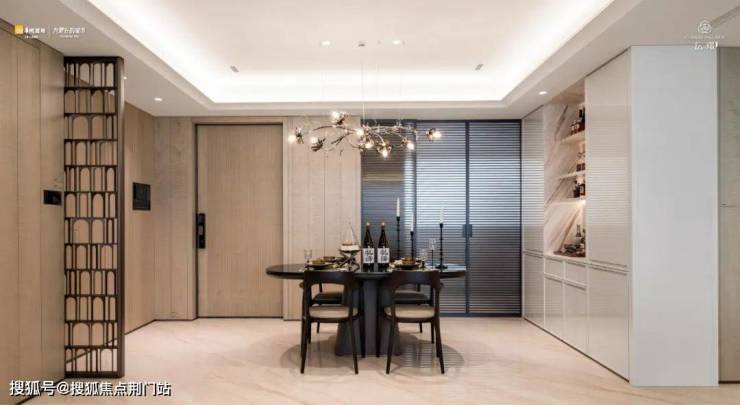 玄关处大量哑光影木面板的设置,质感满满。艺术屏风和厨房隔断门的横向线条,与主次卧室内的格栅相呼应,成了室内标志性的元素,颇具艺术感。