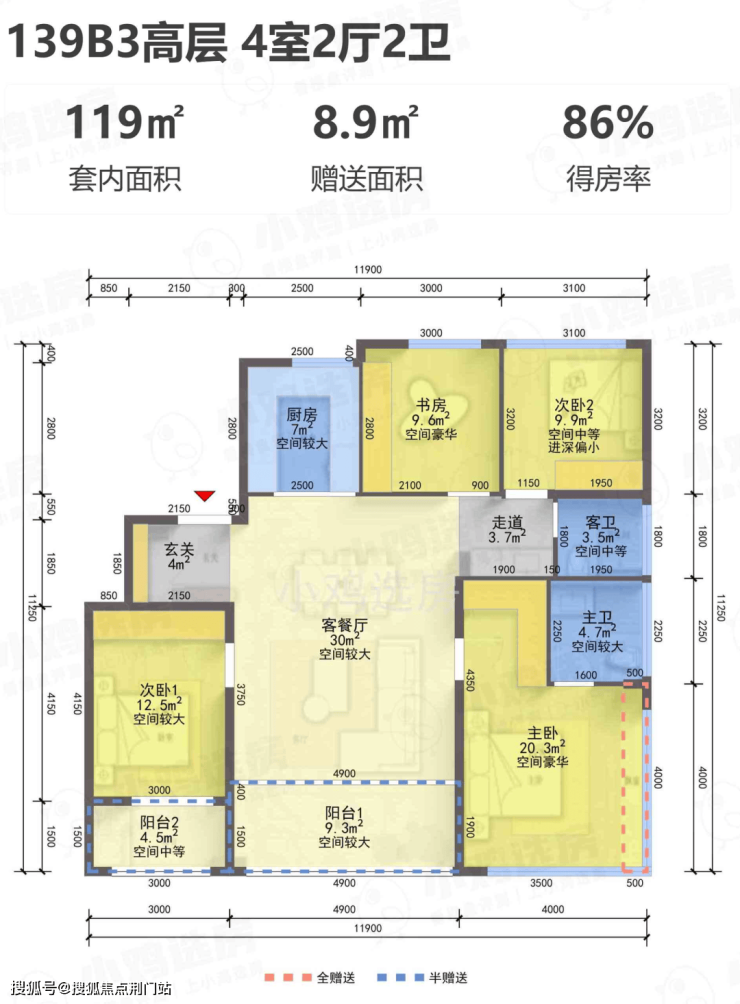 【得 房 率】:含赠送86-90%