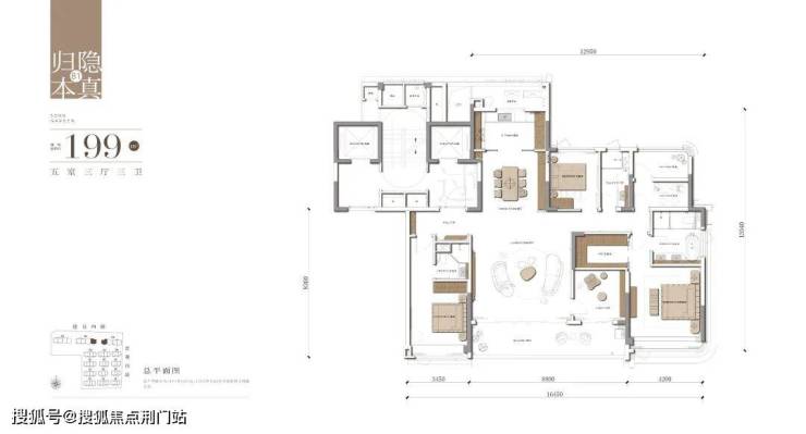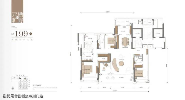 建面约199㎡现代雅奢五房,约16.5米南向巨幕四开间,LDKB一体化家族巨厅设计,双南向套房,总裁式主卧套房,高配洄游式衣帽空间、超级卫浴系统,颂赞静奢人生。
