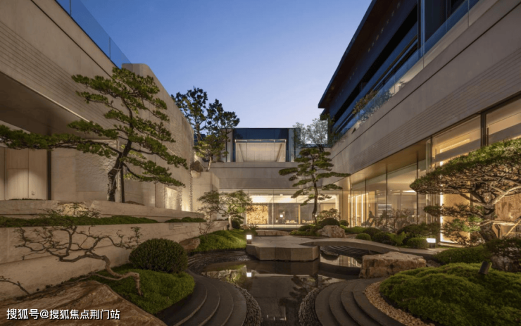 初见,松川境即以一座约80米礼序门庭宣告不凡。特选「百树之王」名贵黑松,约25米叠级水景,磅礴而又奢雅的气场扑面而来。