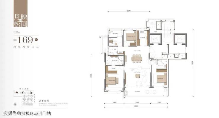 松川境,首开14#楼王墅境住宅大平层,直面约3300㎡央景,仅17F舒居小高层,超90%得房率,共计64套房源,户型包括建面约169㎡都会隐奢四房、建面约199㎡现代雅奢五房。