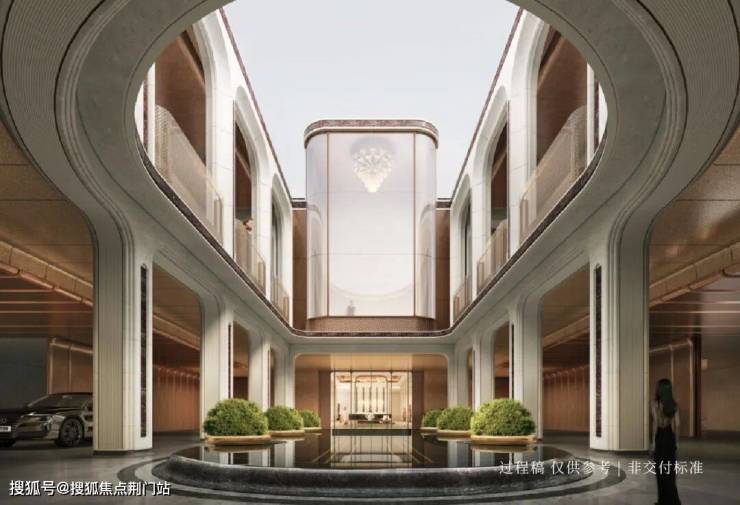 中央园林围合出下沉式庭院,园区内带景观廊架,人行主出入口位于小区东侧,入口直接能看到整个豪华园林,预计会非常壮观(期待实景呈现)。