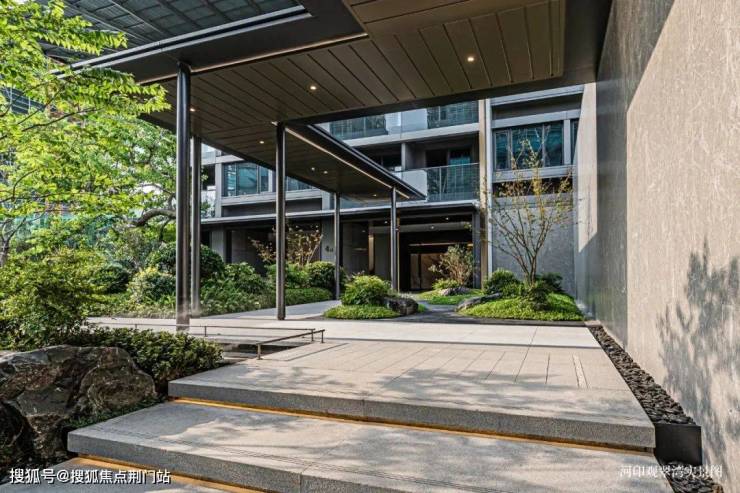 四面大面积铝板结合仿木纹线条,搭配屋顶飞檐造型,品质感超绝,酒店式入户大堂的度假感、风雨连廊的高级感......