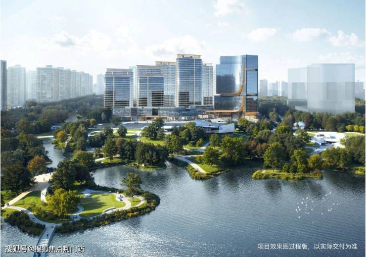 又如,园林景观方面融合各种类型的植被、观景会客厅、大面积镜面水景、曲苑回廊等,打造难得一见的诗意园境。