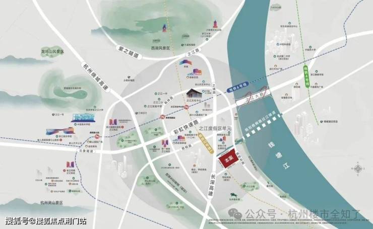 这里不仅是之江当下资源萃聚之地,更是杭州CED中央生态区的未来所向——阿里巴巴飞天园区、国科大杭高院等科创引擎轰鸣,之江文化交流中心、游轮母港(投资100亿)擎动国际滨水都会的璀璨明天。