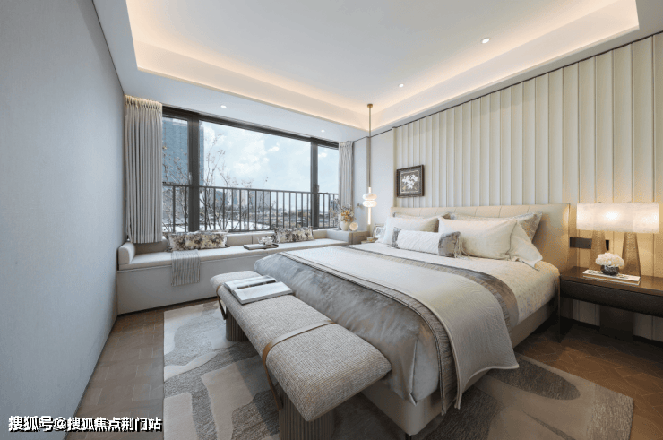 在春来晴翠园建面约169㎡晴翠户型中,最亮眼的设计显而易见——主卧90°转角窗,揽获270°环幕视野,将天光云影尽纳室内。不仅引入绝佳采光与风景,更成为一处心灵栖所。