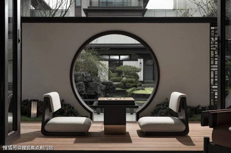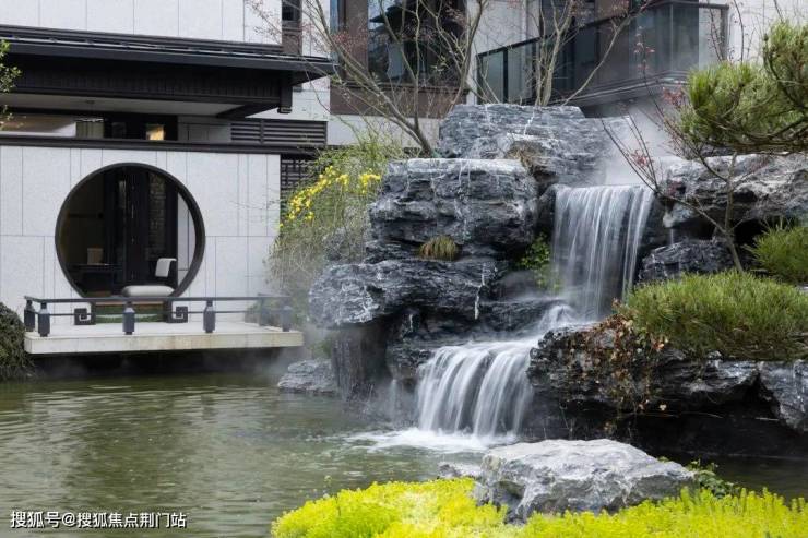 少数户型,还可以直接穿过花园旁的月洞门,拥有自己的亲水平台。中央园林的跌水假山,满池的锦鲤,就直接成了自家花园的景。