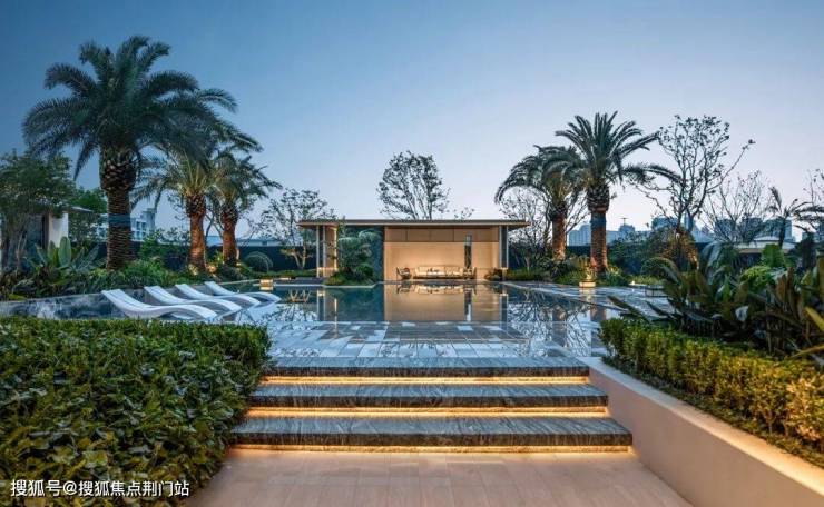 园林中心还嵌着带下沉卡座的海岛度假水池,有一抹深邃的蓝……