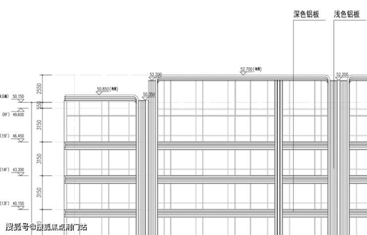 外立面则以深色铝板+浅色铝板+浅灰色玻璃搭配组成,效果比较简约、大气。