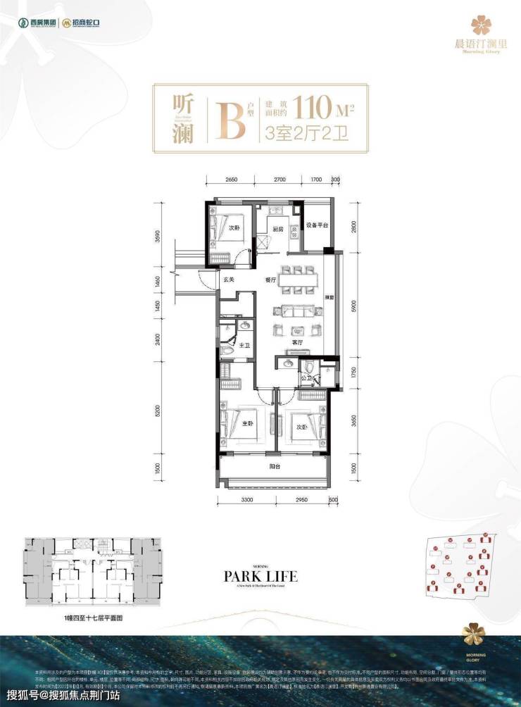项目共计规划14幢16-17F高层,架空层设计;主力户型99-139㎡,一共有6种户型,小户型99㎡、110㎡、111㎡,大户型则有129㎡、130㎡;起步户型99㎡,三房两卫,涵盖刚需、改善各类需求。