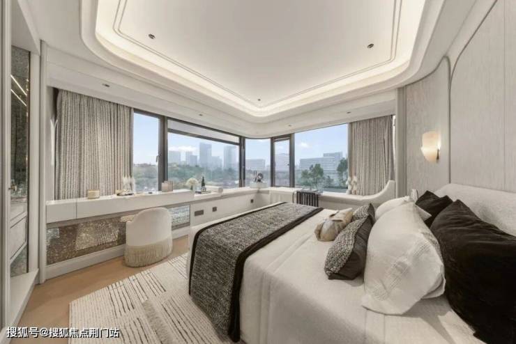 类一梯一户设计,独立玄关;类四叶草户型,空间互不干扰;南向户型整体面宽约12.7米,采光充沛;主卧270度转角飘窗,L型全景采光面;客厅阳台封闭后仍保留多阳台&设备平台,兼顾观景与实用晾晒。