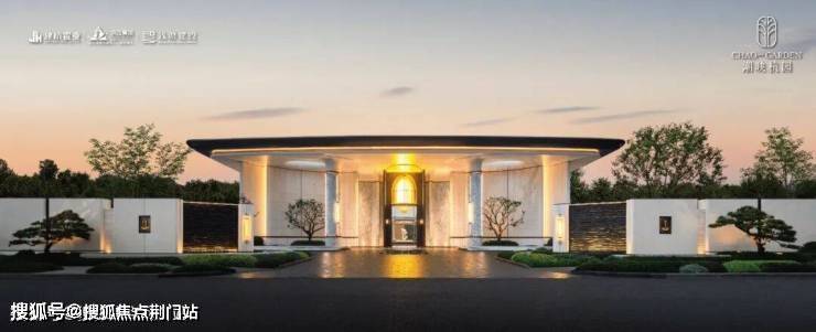 它汲取上海前滩华尔道夫酒店为灵感,以月光米黄石材为主基调,弧形景墙、安第斯雪景奢石柱子、极品铁冬青等结合使用,整体层次细腻,恢弘大气,也是业主身份的象征。