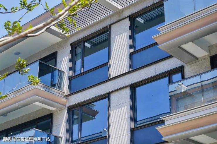 首先,外立面作为第一道风景线,率先映入眼帘——现代风格化繁为简,以极致工艺营造高颜值的质感立面,香槟色木纹铝板+银色金属线条,搭配大面积的通透玻璃,勾勒出灵动的城市天际线,展现出建筑独有的美学魅力。