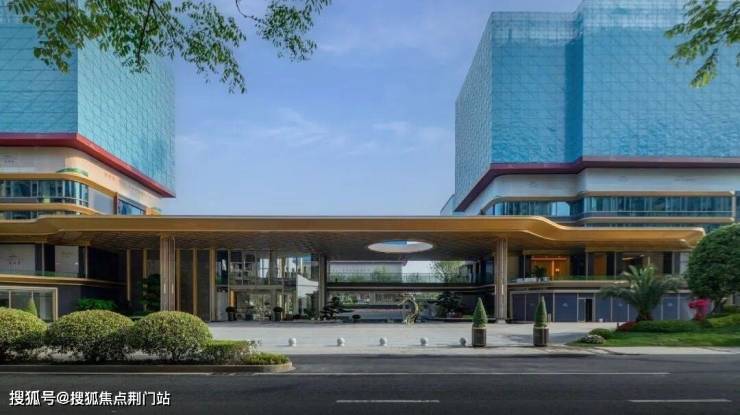整体的抬高,让约70米宽的鎏金天幕大门头高度达到了约9米,显得格外气势非凡。天桥连接了会客厅、架空层和内部园林。