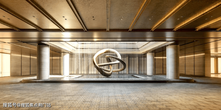 外立面是银河白麻石材搭配香槟色铝板,石材采用折扇的工艺,让立面造型更加立体,顶豪即视感。
