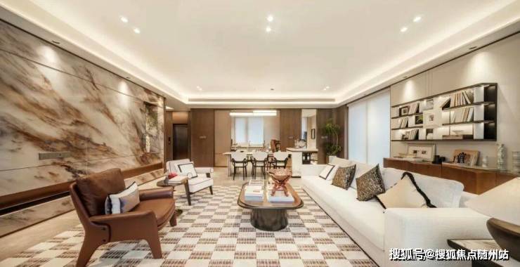 餐客厅采用LDKB一体化设计,连通封闭阳台形成约55㎡的“无界方厅”,空间感强,功能灵活。