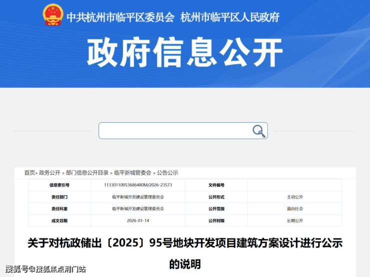 近日,临平区发布了杭政储出〔2025〕95号地块开发项目建筑方案设计公示。