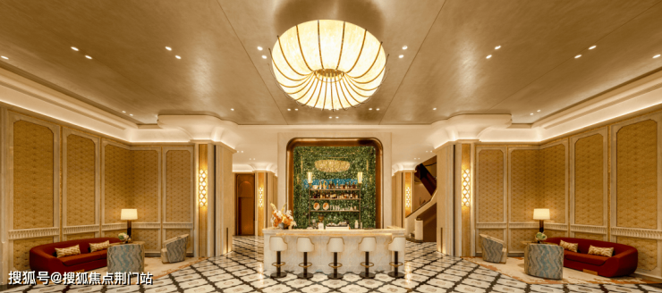 琉璃墙背后,则是立体艺术下沉式车马院“星芒院”,上下两层拱柱贯穿,饰以大面积的安第斯雪景奢石,让人有种误入凡尔赛宫之感,生生将回家之路,烘托成一场盛大的加冕之旅。