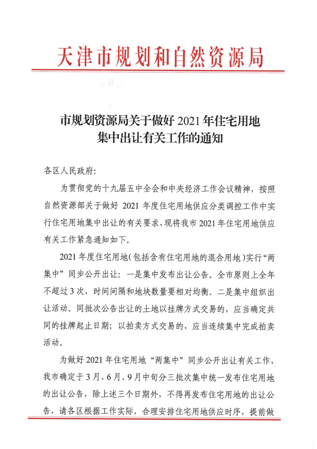 同时,关于集中供地的红头文件也面世了。