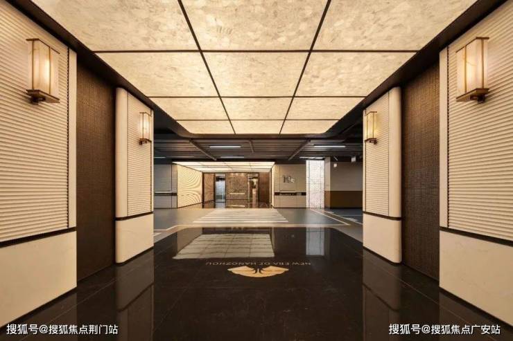 在巨幅挑檐与落地幕墙的勾勒下,约30米超宽幅门庭形成气势磅礴的迎宾界面,一笔绘就潮语臻境府美轮美奂的开场。
