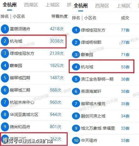 在售新房近30日网签约274套;近一周二手房带看热度榜前十楼盘中,云城就占据两席,其中「杭与城」近30天成交套数更是位列前茅。