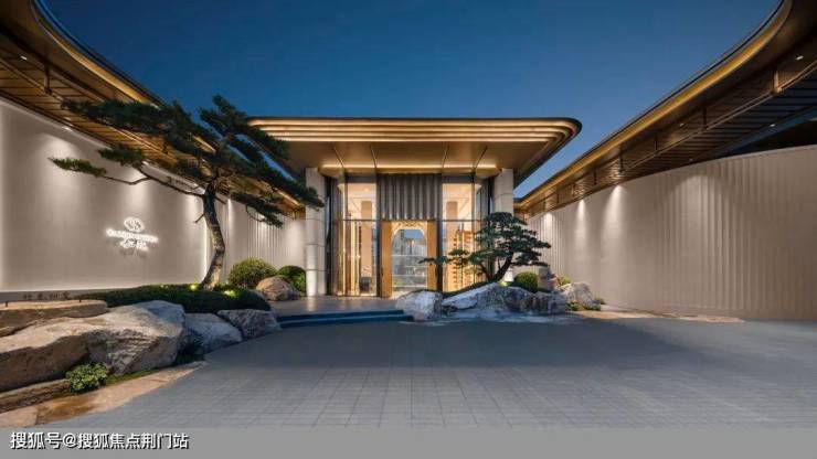 你看,入户门厅与大堂,借助钱塘古石、迎宾水景以及两侧黑松,打造尊崇的仪式入口。