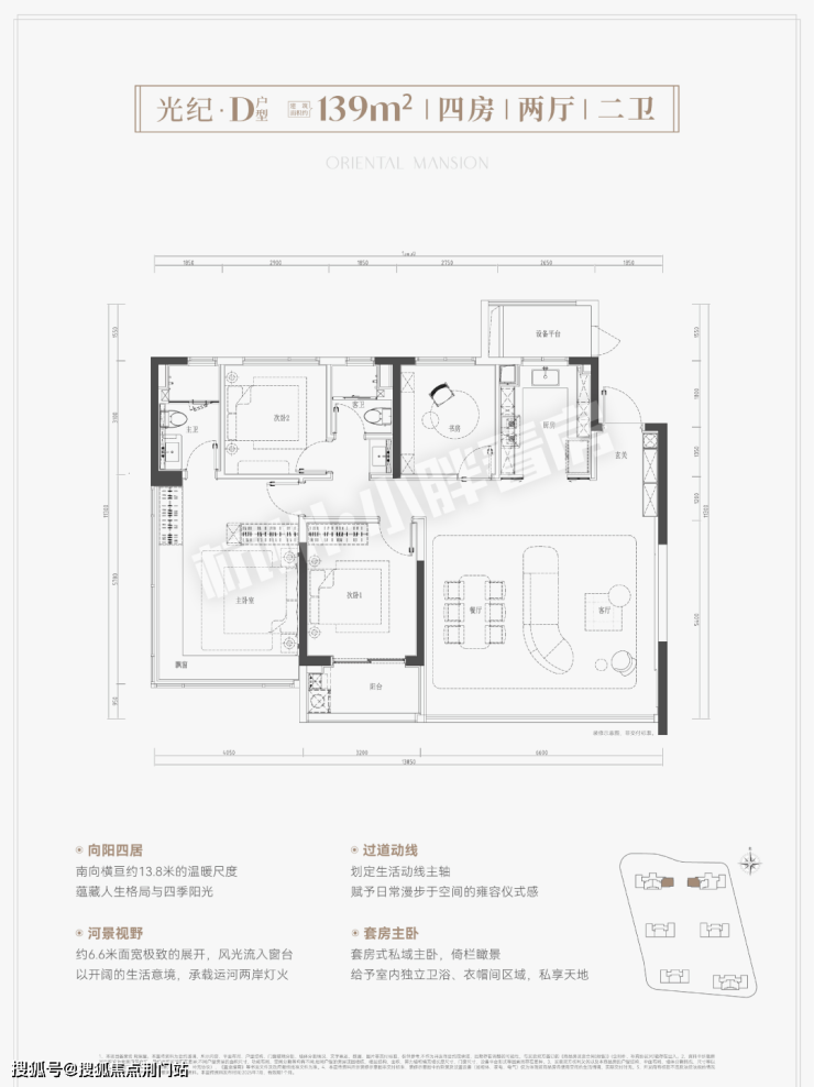 建面约139方户型: