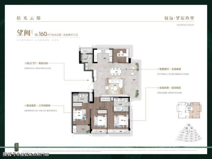 全部规划为约160㎡四室两厅三卫的格局,以“270°环幕采光”为核心设计理念,将半山风景嵌进每一寸空间,既承载得起家庭的温暖烟火,也装得下塔尖生活的体面。