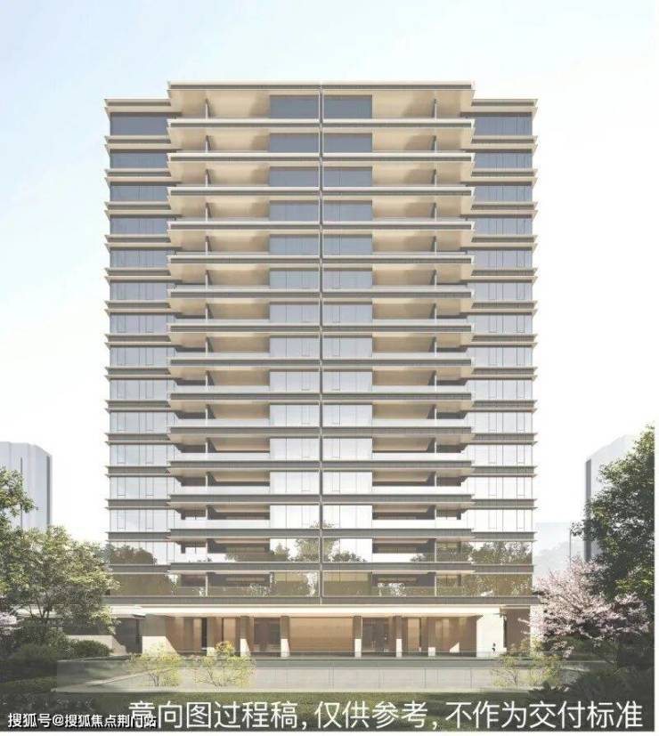 高层建筑立面采用铝板、玻璃和石材等材质的组合,层间线条选用了专属烧制的均釉陶砖。