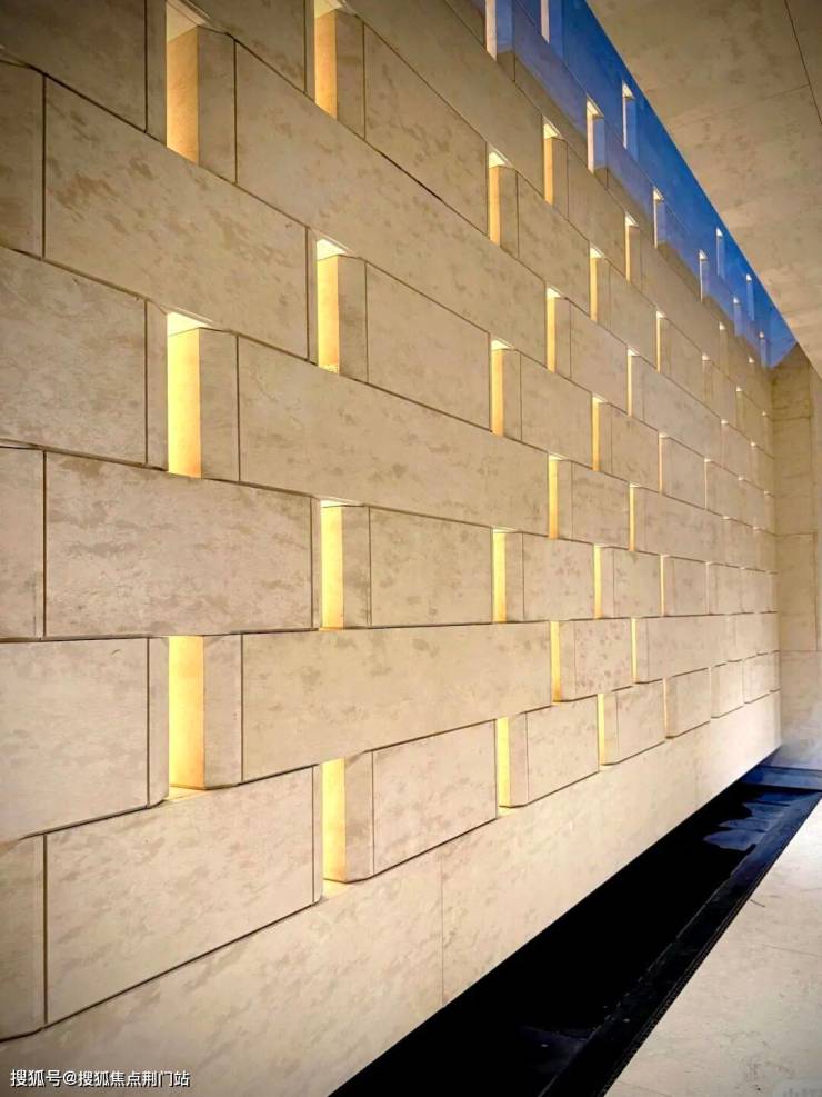 这种做法施工难度极高,成本也高于普通立面,但可以消解传统石材的沉钝感,在灯光映衬下更显温润轻盈。
