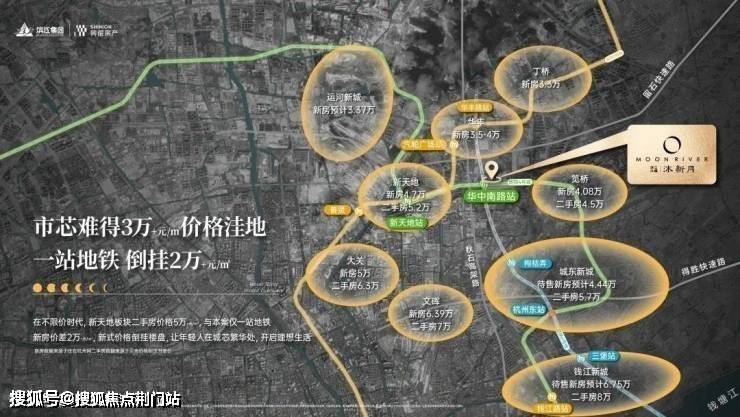 杭州几个主流3万+板块,如勾庄、运河新城、之江、未科、云城,到武林广场普遍在10-16公里。但沐新月到武林广场直距仅约6.8公里!