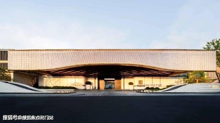 首先,楼盘的主入口是宽约46米、高约9米的阔绰大门,顶部是由约2280片波浪形的水晶玻璃瓦拼合而成的大屋檐,灵感来自“京杭大运河博物馆”。