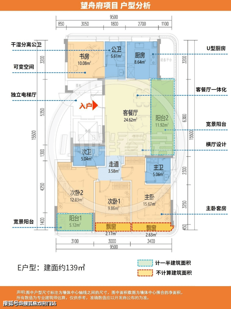 建面约139方户型: