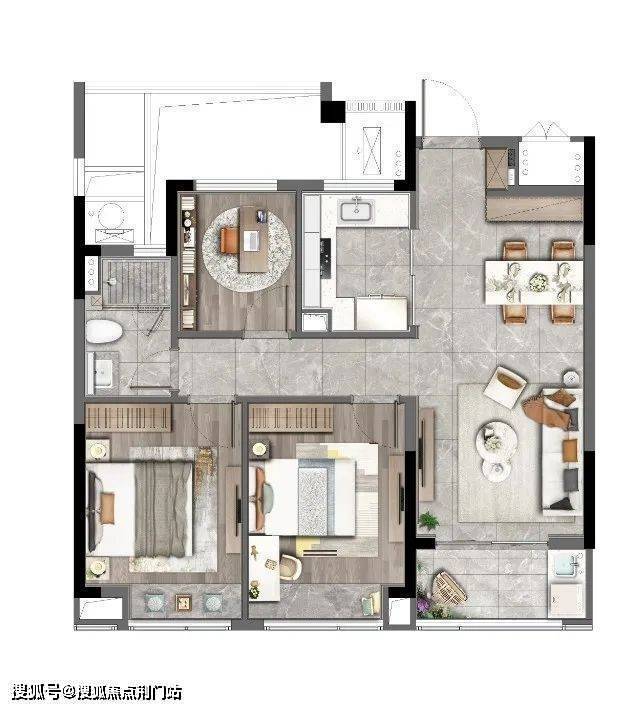 苹果手机拍摄建面约106方清水样板间,先欣赏一下。精装修方面, 中央空调、地暖等配齐,厨房方太三件套(包含洗碗机)以及卫浴智能马桶等,该有的都有,精装修标准挺高的。后续小胖拿到更多精装细节资料,再与大家一起分享: