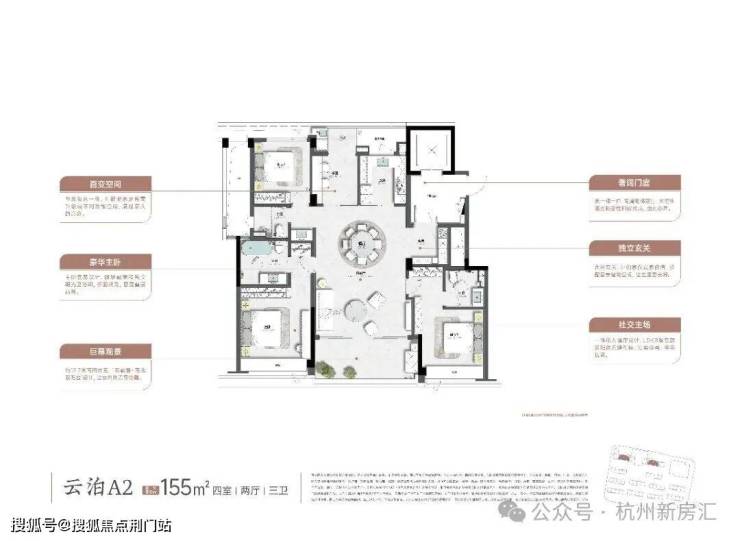 建面约155㎡户型:首先,空间利用率太顶了。双阳台、双飘窗、设备平台、电梯前室全配齐,实际体验感完全不输180㎡的大平层,是真正的小面积大空间典范。其次,归家动线方面,类一梯一户设计、外加宽敞的电梯前厅,直接把尊贵感拉满。