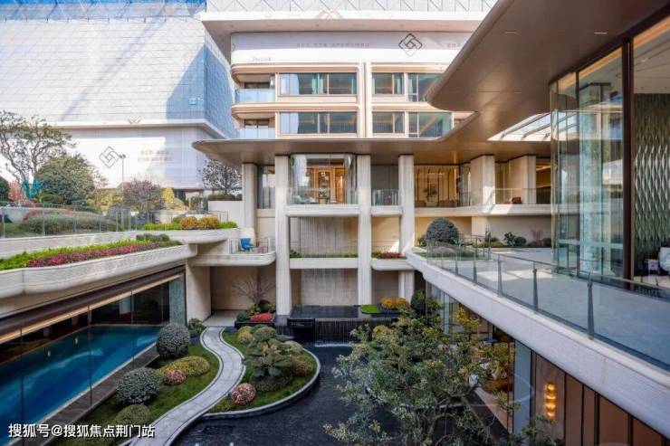 大门做了约68米宽的“鎏光锦门”,镂空琉璃砖加发光云母石吊顶,门口两颗对称的罗汉松。这个规格,以前在申花、钱二的改善盘里才常见。