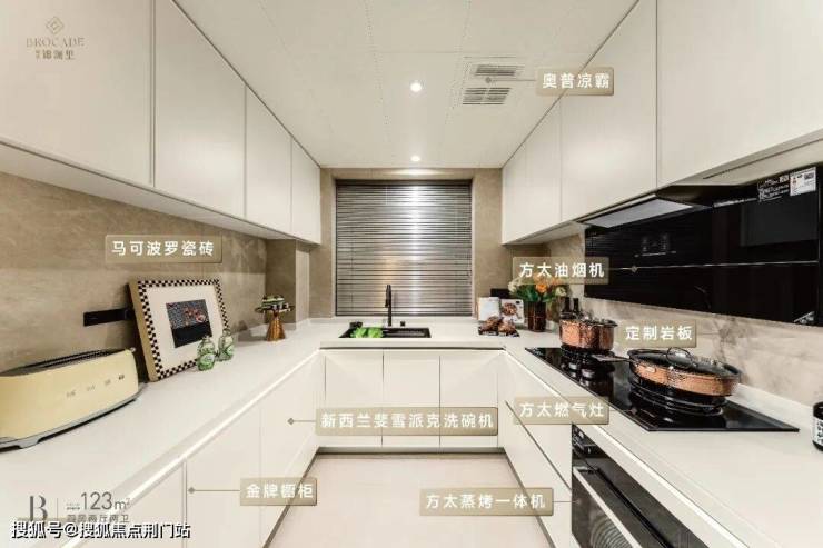 厨房配的是方太新款感应式超薄油烟机(挥手开关,烟灶联动)、方太防干烧燃气灶、方太蒸烤炸炖一体机,以及斐雪派克抽屉式洗碗机。