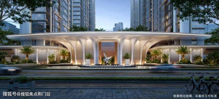 项目的北面紧挨着河道,主要出入口位于西面景兴路,,通过钻石型大堂进入下沉式庭院。南面思凯路上也有车行入口,做了景观构架。