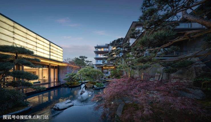 缓步入内,复刻南宋夏圭《溪山清远图》的美学灵魂,引水入园,打造约150米中央景观水系「松壑长风」。还有面积约520㎡的下沉庭院,以十八学士山茶花沿涧种植,如同一幅「涧水鸣珮,山茶照影」的东方长卷。
