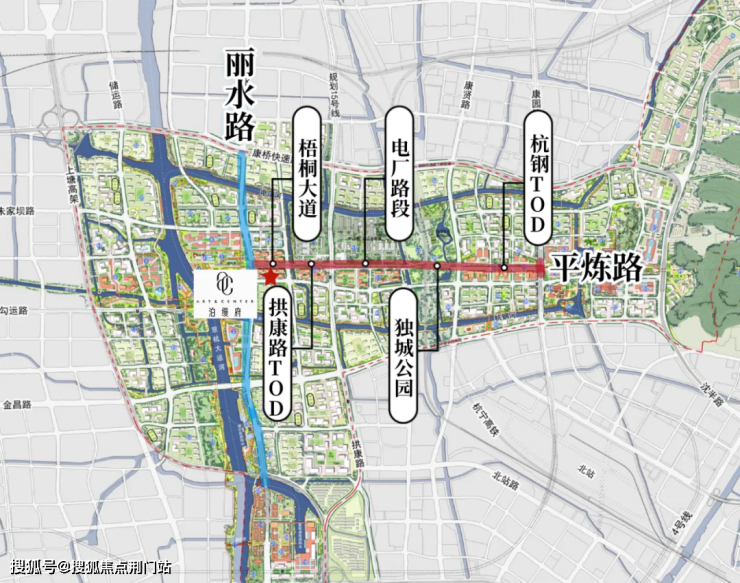 泊缦府北面,门前的平炼路,将打造成一条由BIAD设计的“大城北中央景观大道”(首开段已建成)。景观大道向东,将连起SOM设计的杭钢站TOD、刘家琨&美国TLS景观事务所操刀的大运河杭钢公园(部分已试运营)。