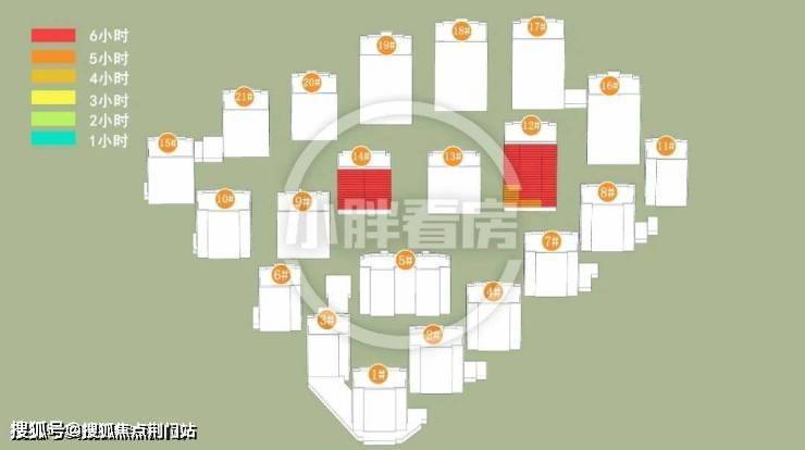 和萃揽悦园的分析结果是这样:计算已考虑周边所有建筑的影响,结果表明由于周边规划尚未公示,暂且不建,楼栋仅受地块内部影响。(说明:本文日照数据基于公示规划图纸文件,使用专业制作工具完成,仅供参考)
