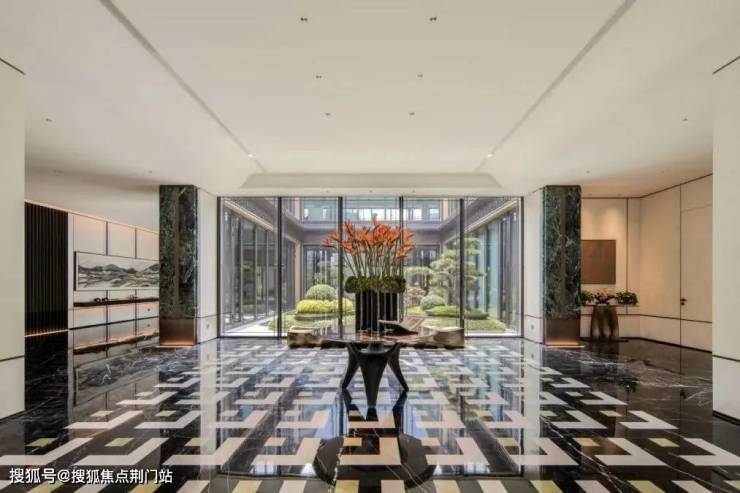 从当代艺术馆到板块唯一的国标恒温泳池、健身房、瑜伽室,溪映听庐的听庐雅舍使用了大量的玉石和金属,雅奢的质感拉满。