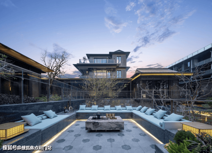 再融合传统合院的歇山重檐、寓意福瑞的纳福悬鱼、古朴典雅的黛墨青瓦,以及错落有致的瘦金披檐、翠意盎然的怀翠亭、依山傍水的倚山阁等经典元素,现代建筑中注入古典东方文化的精髓,营造出一幅古今交融的和谐画卷。