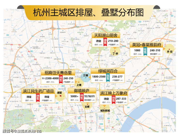 摊开住浙网梳理的主城排屋叠墅分布图,现实扎心。在这张图上,目前蒋村地块的规划未出,明确做排屋的仅有御境映庐,据悉这个项目总价5000万+,与绝大多数的购房者无缘。