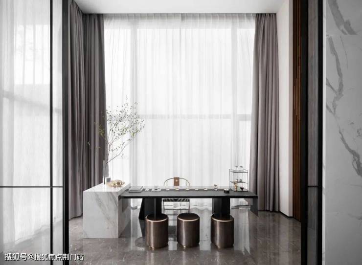 细腻的皮革与硬朗的金属相互衬托,精美摆饰的点缀,丰富肌理质感。拾一本书、听一段音乐、亦或对弈一番,在深浅疏密的时光里,静悟空间轻吟美妙韵律。