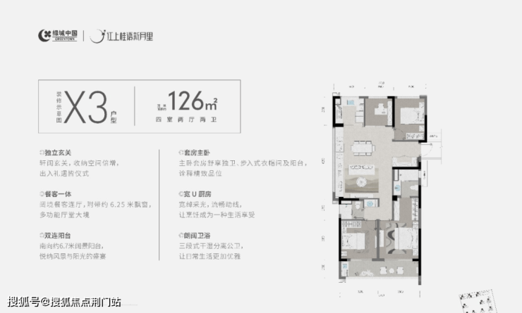 3、改善大边厅户型:建面约126㎡,