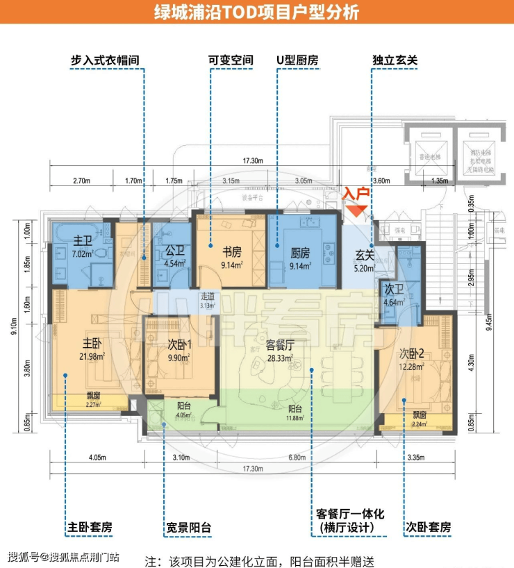 起步约105㎡户型,进门就是通铺的约10米的收纳墙。