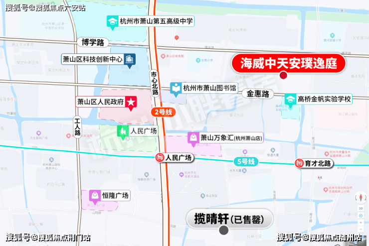 海威中天·安璞坐落于萧山区金惠路与育才北路交汇处,地处北干板块——萧山公认的政治、文化、商业中心。在绝大多数萧山本地人眼中,北干是萧山的核心地带,作为区政府所在地,这里聚齐了所有繁华配套。