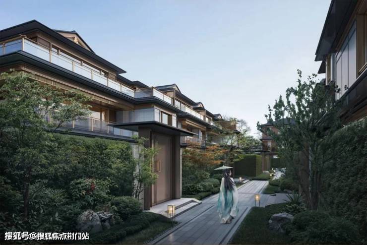 住宅立面设计延续了宋式建筑水平、简洁、飘逸的审美精髓,私人庭院内采用传统园林“堆山、叠石、理水”的造园手法,并以建筑、灌木、小桥和流水,构建起高、中、低三个层次的景致。